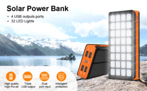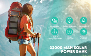 Solar Power Bank 32000mAh, Qi 10W Fast Charging with 4