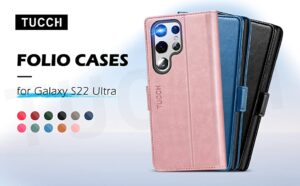 TUCCH Case for Galaxy S22 Ultra (6.8″) 5G 2022, Magnetic PU Leather Wallet Cover with[Kickstand][RFID Blocking]Card Holder, Protective Shockproof TPU Folio Compatible with Galaxy S22 Ultra, Black