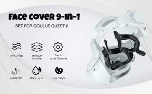 VR Silicone Cover Accessories for Oculus Quest 2, VR Silicone shell Cover Protective ,Controller Grip Cover with Adjustable Leather Strap , Anti-Leakage Silicone Face Cover and Lens Protective Cove