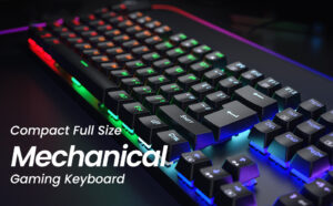 Mechanical Gaming Keyboard Full Size, LED Rainbow Backlit Ultra-Slim Wired Keyboard with Blue Switches, Full-Key Rollover, 104 Keys Ergonomic Waterproof Computer Keyboard for PC Mac Xbox Gamers