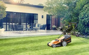LawnMaster 1800W Electric Lawn Mower with 40cm cutting width, ideal for larger lawns, with rear roller and mulching function, 2 year guarantee