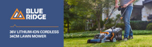 BLUE RIDGE 36V Cordless Lawnmower with 2.0 Ah Li-ion Battery, 34 cm Cutting Wide, 6 Stages (20-70mm) Cutting Height Adjustments, Grass Collection Box & Charger Included