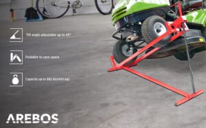 Arebos lawn tractor lift | 400 kg | 45° angle of inclination | infinitely adjustable | lifting device | lifting platform | ride-on mower | cleaning aid