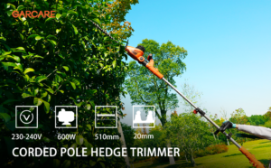 GARCARE Corded Pole Hedge Trimmer – 2 in 1 Extendable Telescopic Hedge Trimmers Long Reach 2.8m,Electric Hedge Cutter Shrub Trimmer (510 mm Cutting Blade, 20 mm Cutting Space, 600W)