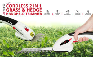 NETTA 2in1 Grass Shear & Hedge Trimmer with 7.2V Rechargeable 1500mAh Lithium-Ion Battery, Edging and Shrub Shear, 2 Interchangeable Blades, Lightweight, Garden Cutting Edge Trimmer, Pruner – Handheld