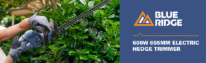 BLUE RIDGE 600W Electric Hedge Cutter/Trimmer BR8202 655mm Blade Length, 16mm Tooth Spacing, 6m Long Cable, Blade Sheath Included