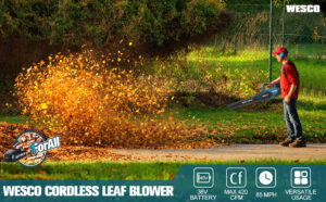 Cordless Leaf Blower 36V WESCO, 420 CFM, 2 x 18V 2.0Ah Li-ion Battery Blower, 132 km/h Air Speed, Max air volume 714 m³/h, Lightweight Design/WS8512
