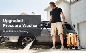 Pressure Washer, SUNPOW High Pressure Jet Wash, 2000 Watt, 165 Bar(Max), Flow 480 L / H, 4-Wheel Dual Form Design Power Washer with Telescopic Rod, Onboard Detergent Tank and 5-Nozzle for Home, Patio