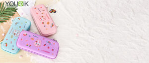 Younik Switch Case Compatible with NS Switch/Switch OLED, 11 in 1 Black Switch Accessories Kit Include Switch Carrying Case, Thumb Caps, Cute Sticker and Penda