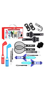 Aukuoy 2022 Switch Accessories Bundle Compatible with Nintendo Switch/Switch OLED, Accessories Kit for Nintendo Switch Sports with Leg Straps, Tennis Rackets, Glof Clubs, Sword, Wrist Straps