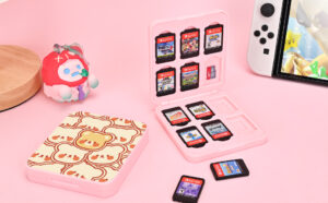 DLseego Switch Game Card Case for Switch OLED/Switch Lite/Switch,Adorable Animal Storage Game Card Holder Case with 12 Game Card and 12 Micro SD Card Slots,Pink Bears