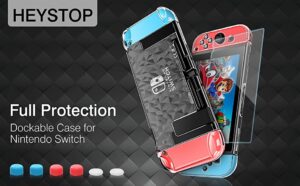 HEYSTOP Case Compatible with Nintendo Switch Dockable Clear Protective Case Cover Compatible with Nintendo Switch and Controller with a Switch Tempered Glass Screen Protector and Thumb Stick Caps