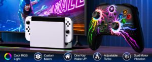 HELLCOOL Switch Pro Controller, Wireless Switch for Controller with Cool RGB, Macro/Turbo Function, Precise Motion Control, Switch Controller Compatible with Switch/Lite/OLED Console