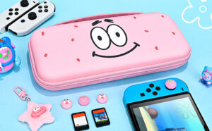 DLseego Carry Case for Switch/Switch OLED,Lovely Cartoon Face Hard Portable Travel Carrying Case,with 4PCS Switch Joystick Caps and 1PC Plush Five Pointed Star Charm,Pink