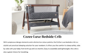 Tutti Bambini CoZee Luxe Bedside Crib | Suitable from Birth to 6 Months, Soft-Touch Upholster, Washable 100% Cotton Lining | Crib Mattress, Co-Sleeping Safety Straps & Carry Case | Walnut/Cream