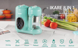 Baby Food Maker- IKARE 8 in 1 Self Clean Baby Food Processor Blender Grinder Steamer with Detachable Water Tank and Steam Basket & Bowl – Touch Control Panel -Cooks Baby Food in 15 Mins.