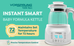 VORSPRUNG® Smart Baby Formula Kettle – Silent and Thermostatic, Baby Prep Feeding Kettle, Touch Screen, LED Display, Fast Accurate Temperature Control + Large Water Capacity for Bottles, Eco-Friendly