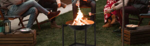 CAMORSA Outdoor Fire Pit, Patio Heater Wood Charcoal Burner Brazier with Grill Rack Poker and Safe Mesh Cover Steel Round Portable Fire Bowl Garden Patio for BBQ Camping Picnic 55 x 55 x 72cm