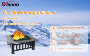 Sekey Fire Pit Outdoor 3 in 1 Metal Square Firepit Table with BBQ Grill Shelf, Poker, 32*32*14 inches Heavy Steel Fire Bowl Garden Patio Heater Charcoal Log Wood Burner for Patio Backyard Garden