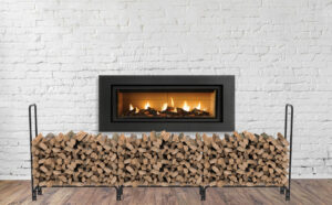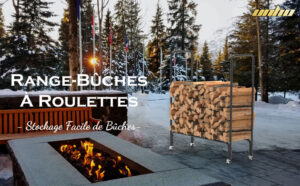 UNHO Outdoor Firewood Log Rack, Metal Log Storage Holder on Wheels Heavy Duty Fireplace Log Holder Load Capacity up to 110lbs Black