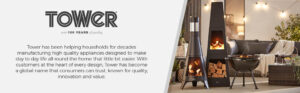 Tower T978509 Obelisk Wood Burner with Wood Storage Block, Black