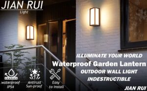 JIANRUI Outdoor Wall Light , Max 60W E27 Outside Wall Lamp IP54 LED Aluminum Exterior Wall Sconce Garden Lantern , Matte Dark Grey [Energy Class A+]