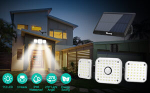 Solar Security Lights, 112LED Motion Sensor Solar Lights Outdoor, Wall Lights with Separate Solar Panel, 3 Adjustable Head 270° Wide Angle, Waterproof Solar Flood Light for Yard Garage Pathway