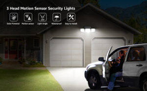 LE Solar Security Lights, 72 LED Wireless LED Motion Sensor Solar Lights Outdoor with 3 Adjustable Heads 270° Wide Angle IP65 Waterproof LED Flood Light for Yard Garage Pathway