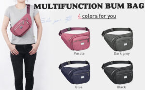 Skechers Bumbag Waist Fanny Pack for Men and Women Hiking Waist Bag Waterproof with 2 Zip Pockets Adjustable Belt for Sport Running, Cycling, Hiking, Dog Walking, Travel Black