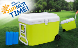 SUNMER Cooler Box 50L With 2 Ice Packs, Advanced EPS Insulation Foam, Keeps Cold For Up To 48 Hours, Clip-Lock Secure Lid, Built-in Wheels and Handle – Lime