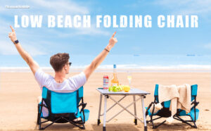 Homarkable Beach Chair Set of 2, Beach Chairs Low Folding Lightweight with Mesh Back, Portable Low Deck Chair with Cup Holder & Carry Bag for Outdoor Relaxing Camping (Blue)