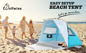 WolfWise 4-5 Person Easy Up Beach Tent UPF 50+ Instant Sun Shelter Canopy Outdoor Sport Umbrella Sun Shade Tent with Extended Zippered Porch Portable, Blue