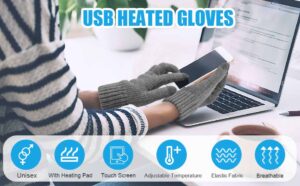USB Heated Gloves, Luckits Unisex Winter Hand Warm Gloves Washable Touchscreen Gloves Adjustable Temperature Heating Mittens Knitting Wool Laptop Gloves Winter Gift for Women Men Christmas