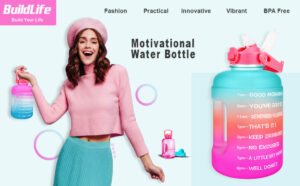 MEITAGIE 2.2 Litre Large Water Bottle with Time Marker, Leakproof Half Gallon 2.2L Drink Bottle with Straw & Handle,Ensure You Drink Enough Water Daily for Fitness,Gym and Outdoor Sports
