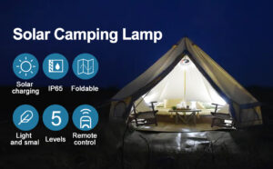 Solar Camping Light, ConBlom 120 LEDs Hanging Camping Lantern with Remote Control, IP65 Waterproof Rechargeable Tent Light, 5 Modes 1200mA Portable USB Charger for Outdoor Camping Hiking Emergency [Energy Class A++]