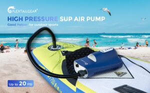 FLEXTAILGEAR Electric Sup Pump with 7 Nozzles, 20PSI Digital Paddleboard Pump with LCD Display, 110W/12V Inflation & Deflation for Air Mattress, Yoga Ball, Kayak, Te