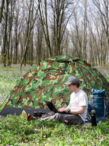 Outsunny 2 Person Camping Tent, Camouflage Tent with Zipped Doors, Storage Pocket, Portable Handy Bag, Multicoloured