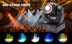 50W LED Moving Head, RGBW Stage Light DMX 512 with LED Ring Rainbow Lighting Effect 10/12 Channel for DJ Club Disco Bar Stage Party Lighting