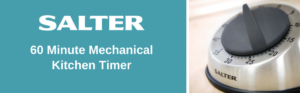 Salter 60 Minute Mechanical Kitchen Timer – Reliable Food Cooking Time Analogue Clock, Clockwork Countdown Mechanism, Long Loud Ring, Easy Grip Rubber Dial – 2 Year Guarantee