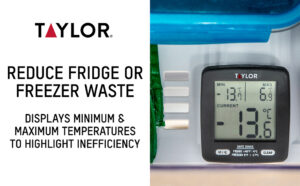 Fridge and Freezer Thermometer with Minimum / Maximum Monitoring Functionality Reduce food spoilage and cut down on energy wastage. This Taylor Pro fridge freezer thermometer accurately monitors the internal temperature of your appliances, so you can ensure they’re set to a safe and efficient level. Its patent pending design also tracks minimum and maximum temperatures over time. When these readings fall outside the safe zones for refrigerating or freezing, you’ll know to turn the temperature up or down, or if there’s a more serious appliance fault. Key Features Large LCD display Its big screen makes monitoring temperatures in your fridge or freezer really easy. Easily stored Hang it from a shelf with the hanging hook, or stick it to the inside of your fridge with the suction cup. °C / °F readings Temperatures can be displayed in Celsius (from 20°C to 60°C) or Fahrenheit (-4°F to 140°F). Dimensions 7.5 x 8 x 3 cm (3 x 3 x 1 inches) Extra Features ‘CLEAR’ button sends readings back to zero Care and use Wipe clean only. Do not submerge in water or put in your dishwasher Batteries Powered by 1 x CR2032 battery (included) Taylor’s Products Are Tried, Tested and Endorsed by Professional Chef, Michel Roux Jr. When Taylor was founded in 1851, by George Taylor, he had a motto: accuracy first. Since then, its legacy has grown to include a wide range of measurement products, for home and industry. From fridge thermometers to measuring scales, Taylor develops the most accurate measurement products. Taylor has been in the measurement business for almost 150 years, which is why it’s a brand you can trust. Size / Capacity / Range -20°C to 60°C / -4°F to 140°F -30°C to 30°C / -20°F to 70°F 23 hours 59 minutes -40°C to 232°C / -40°F to 450°F 14.4 kg / 32 lbs / 14.4 L / 507 fl oz capacity Special Features Designed for fridge or freezer use; displays actual as well as minimum and maximum temperature readings over time Designed for fridge or freezer use; features colour-coded safe and danger temperature zones for refrigerating and freezing 2 x independently programmable timers; unique alarms; large digital display Accurate temperature readings; bright red LED display Large capacity; weigh dry and liquid ingredients accurately; touchless tare Batteries 1 x CR2032 battery (included) N/A 1 x AAA battery (not included) 2 x CR2032 batteries (included) 3 x AAA batteries (not included) Gift Boxed ✓ Check Offer Price Dimensions: 17.4 x 12.6 x 3 cm; 90 Grams Model: TYPTHDIGFF Batteries Required: Yes