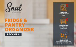 SNUL Fridge Organisers – Set of 6 Fridge Storage Organiser for Refrigerators, Freezers, Cabinets, Countertops, Bath, and Pantry Organizers and Storage – Transparent Containers with Easy Grip Handles