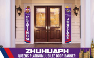 Banner for Platinum Jubilee Decorations 2022, Purple Union Jack Party Supplies Door Banners 70.8″ x 11.8″, Queen Party Decorations for Street Party, Indoor, Outdoo
