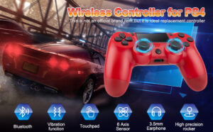 Wireless Controller Compatible with PS4,Double Vibration/6-Asix/Audio Functional Gamepad Remote Compatible with Playstation 4/Pro/Slim, PC and PS3 – Red