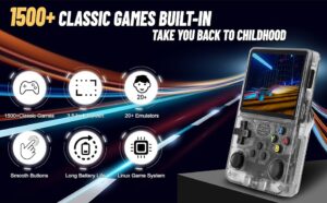 Sentk R36S Handheld Retro Game Console with Open Source Linux System, 3.5 Inch IPS Screen, 64G TF Card 17000+ Retro Classic Games, Retro Games Console Handheld Emulator Console, 3200mAh Battery-Black