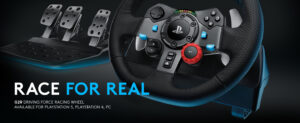 Logitech G923 Racing Wheel and Pedals, TRUEFORCE up to 1000 Hz Force Feedback, Responsive Driving Design, Dual Clutch Launch Control, Genuine Leather Wheel Cover, for PS5, PS4, PC, Mac – Black