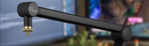 Compass Blue Compass Premium Tube-Style Broadcast Boom Arm Compass is a premium tube-style desktop boom arm with internal springs and built-in cable management, ideal for broadcast applications like game streaming, podcasting, voice-over, and more. With smooth, quiet operation and sophisticated on-camera looks, Compass is the perfect boom arm for mics weighing up to 2.4 pounds, including Yeti and Blackout Spark SL. Premium all-tube, internal spring design Hidden channel cable management Hand-tightened friction-hinges for smooth, quiet operation Designed for Yeti and other professional broadcast mics Compatible with all standard shockmounts Studio-Grade Design Tired of squeaky, flimsy scissor booms? We are too! Compass features a broadcast studio-grade all-tube design with internal springs and hidden-channel cable management. All friction-hinges are hand-tightening, no need for any tools, and a full 360-degree rotation means you are covered for any application. Effortless and quiet, Compass stays in place after being adjusted, and the robust C-clamp creates a solid connection with your desktop. Pair Compass with Yeti and the Radius III shockmount for a professional broadcast setup. Game Streaming, Podcasting & Broadcast Compass is your secret weapon for your Twitch game streams. Being nimble and sleek, Compass lets you put your mic where you want it, when you want it. Whether you adjust the boom to disappear on camera or feature it front and center with the mic, Compass fits perfectly into your game streaming or podcasting setup and will impress your audience. What’s in the Box: Compass desktop boom arm C-clamp for desktop mount 3/8” to 5/8” adapter Specifications Boom Type: Extruded aluminum Desktop Mount: C-clamp Rotation: 360 degrees Max Horizontal Reach: 32” Max Weight Hold: 2.4lbs (including mic and shockmount) Cable Management: Hidden-channel cable management Threading: standard 5/8” threading, adapter for 3/8” threading Check Offer Price Weight: 1.35 kg Dimensions: 111.51 x 5.08 x 6.35 cm; 1.35 Kilograms Model: 989-000517 Colour: Black Batteries Included: 1 Lithium ion batteries required. Colour: Black