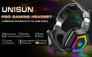 Unisun PS4 Headset PC Gaming Headphone with Microphone 3.5mm Jack Spliter Stereo Sound Breathing RGB Light Adjustable Mic for Xbox One Mac Laptop PC PS5