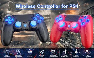 Wireless Controller for P-S4, Game Controller Compatible with P-S4/Slim/Pro, Dual Vibration, 6-Axis Gyro Sensor, High Precision Touch Panel, Audio Jack, 360° Joystick Precise Control – Blue