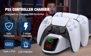 PS5 charging station,PS5 controller charger for Playstation 5 DualSense Controller,PS5 controller charging dock for Sony PS5 Remote w/Fast Charging Type C Cable White