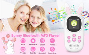 16GB Music MP3 Player for Kids, Cute Bunny Kids Music MP3 Player with Bluetooth, MP3 & MP4 Players with Speaker, MP3 Player with FM Radio, Recordings, Alarm, Pedometer, Stopwatch, Support up to 128GB.